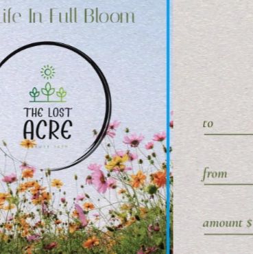 Looking for a unique and thoughtful gift for your loved ones? Give them the gift of beautiful blooms with The Lost Acre's Bloom Gift Certificate! Perfect for any occasion. Redeemable for Floral and Boutique Purchases.